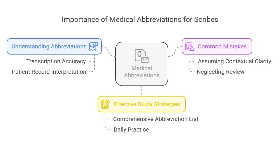 Medical abbreviations are widely used in healthcare settings, and their proper understanding is crucial for medical scribes. However, many candidates neglect to thoroughly review medical abbreviations before the exam, assuming they can rely on context or recall during the test. This is a mistake, as medical scribes are expected to transcribe notes and documents quickly and accurately, often under time constraints. Without familiarity with the most common abbreviations, you may misinterpret or overlook critical details in patient records, which could affect your performance on the exam.