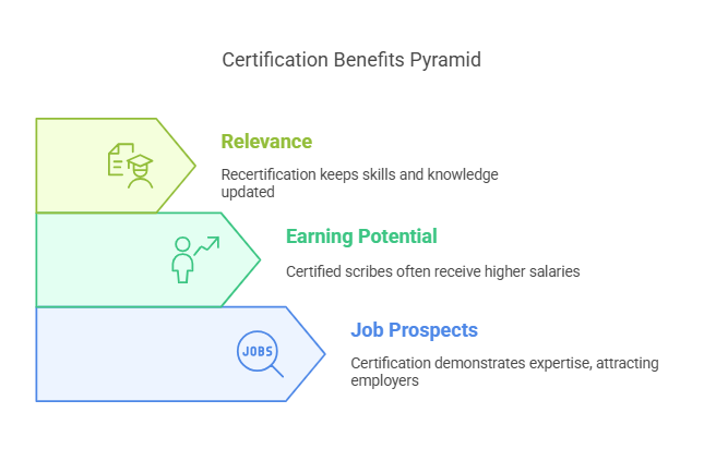 Increased Earning Potential: Certification can translate into higher earning potential. Many healthcare facilities recognize the value of certified scribes and may offer competitive salaries to attract and retain top talent.