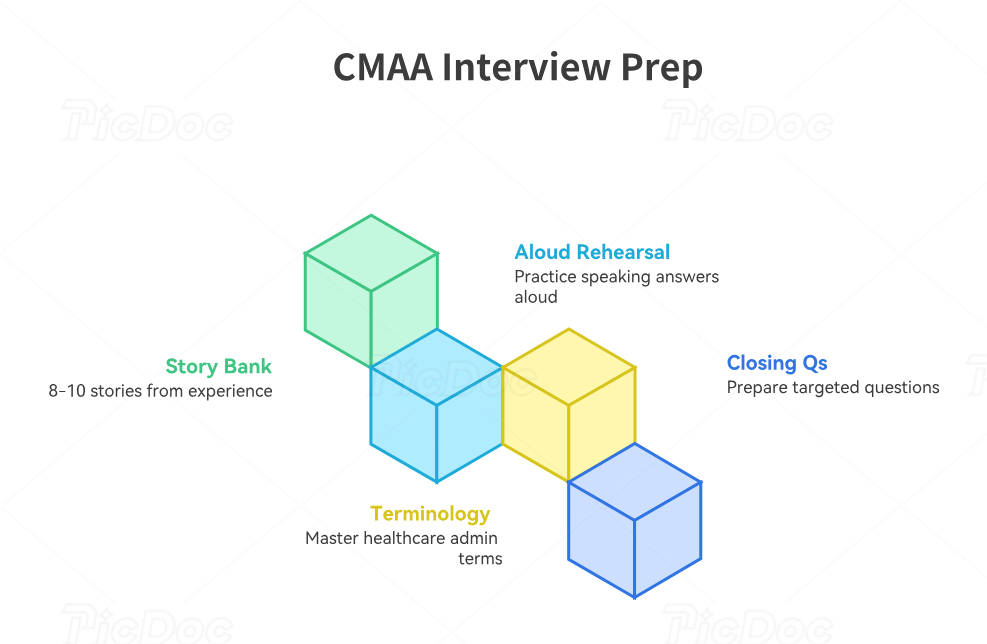 Start by building a bank of eight to ten stories from your experience, training, externship, or transferable work. You need stories about handling volume, calming a difficult person, fixing an error, learning a new system, protecting confidentiality, improving a process, supporting a team member, and managing competing priorities. These examples will carry most of your interview. If your background is thin, lean into training, simulated tasks, volunteer work, customer-facing roles, or coursework connected to ultimate guide to passing the CMAA certification exam, essential study tips for CMAA exam success, how to master medical administrative terminology, complete breakdown of what is included in the CMAA exam, and interactive CMAA practice exam.