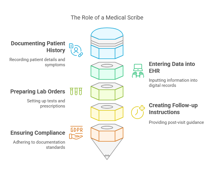 A Medical Scribe is a healthcare professional who assists physicians by documenting patient interactions during medical appointments. They work closely with doctors, nurses, and other medical staff to ensure that all medical records are accurate and up-to-date. Medical scribes help improve physician efficiency by allowing the doctor to focus entirely on the patient rather than worrying about the documentation.