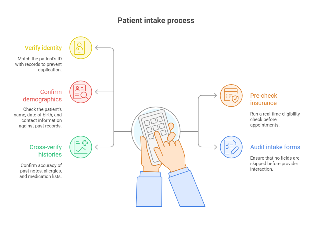 One overlooked tactic is pre-verifying insurance before appointments. Many EMR systems integrate real-time eligibility checks—use them. Also, create a standardized checklist for verifying patient information. This should include spelling, date formats, allergy updates, and prior visit history. These checks avoid downstream errors that could impact provider workflows or billing outcomes.