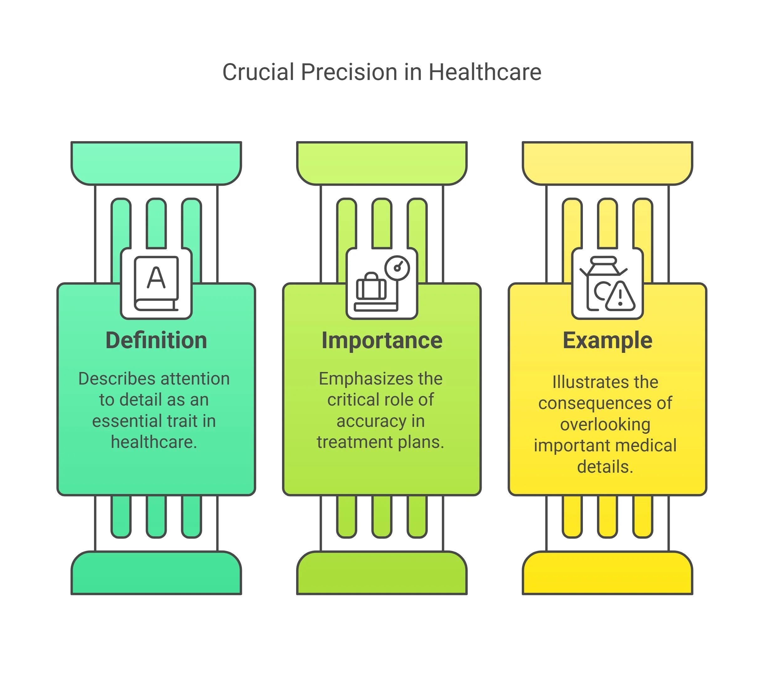 Definition: In the healthcare field, attention to detail isn’t just a desirable trait—it’s essential. A small mistake can result in life-threatening consequences for a patient.