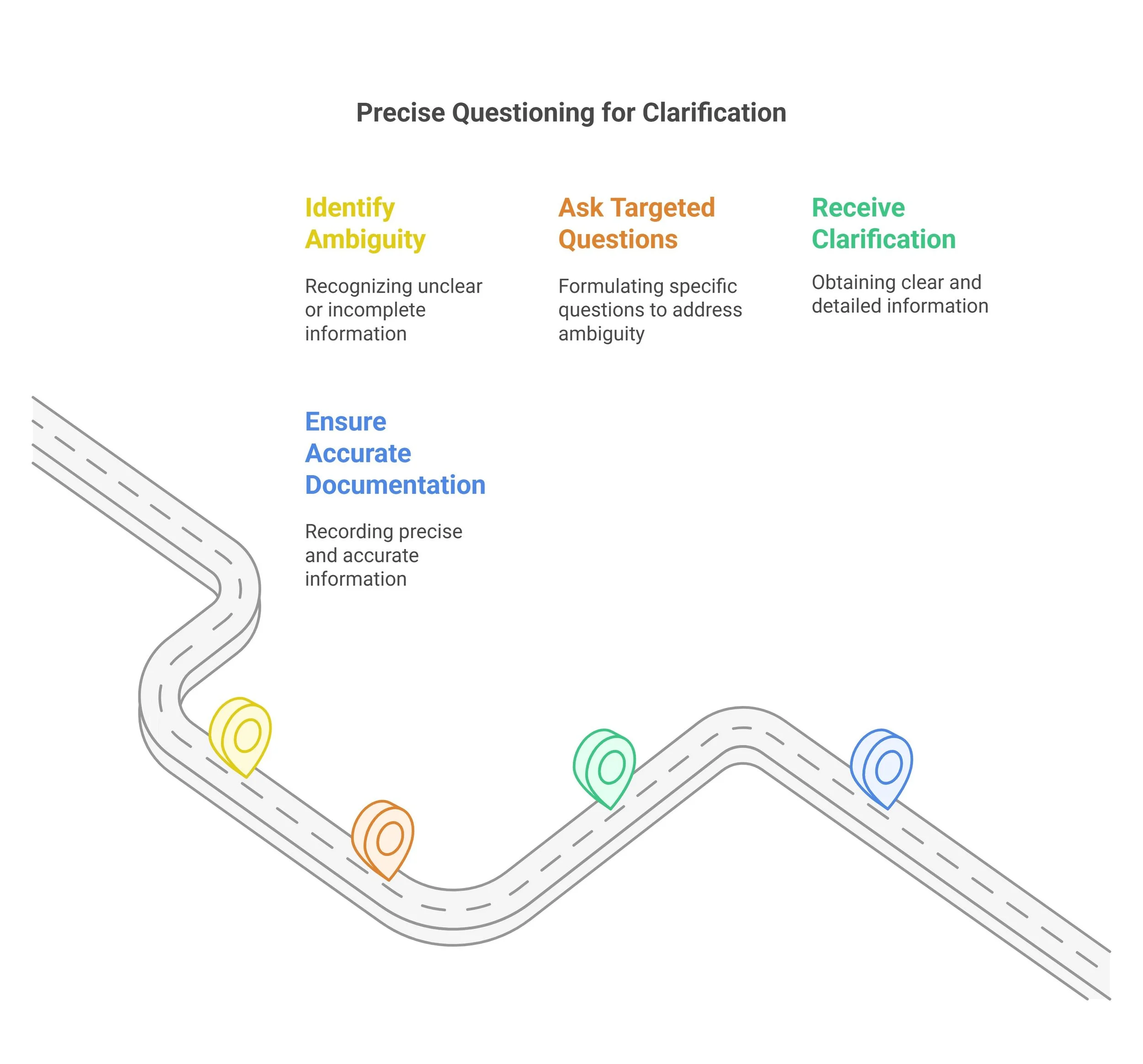 Definition: Asking targeted questions to clarify ambiguous or incomplete information.
