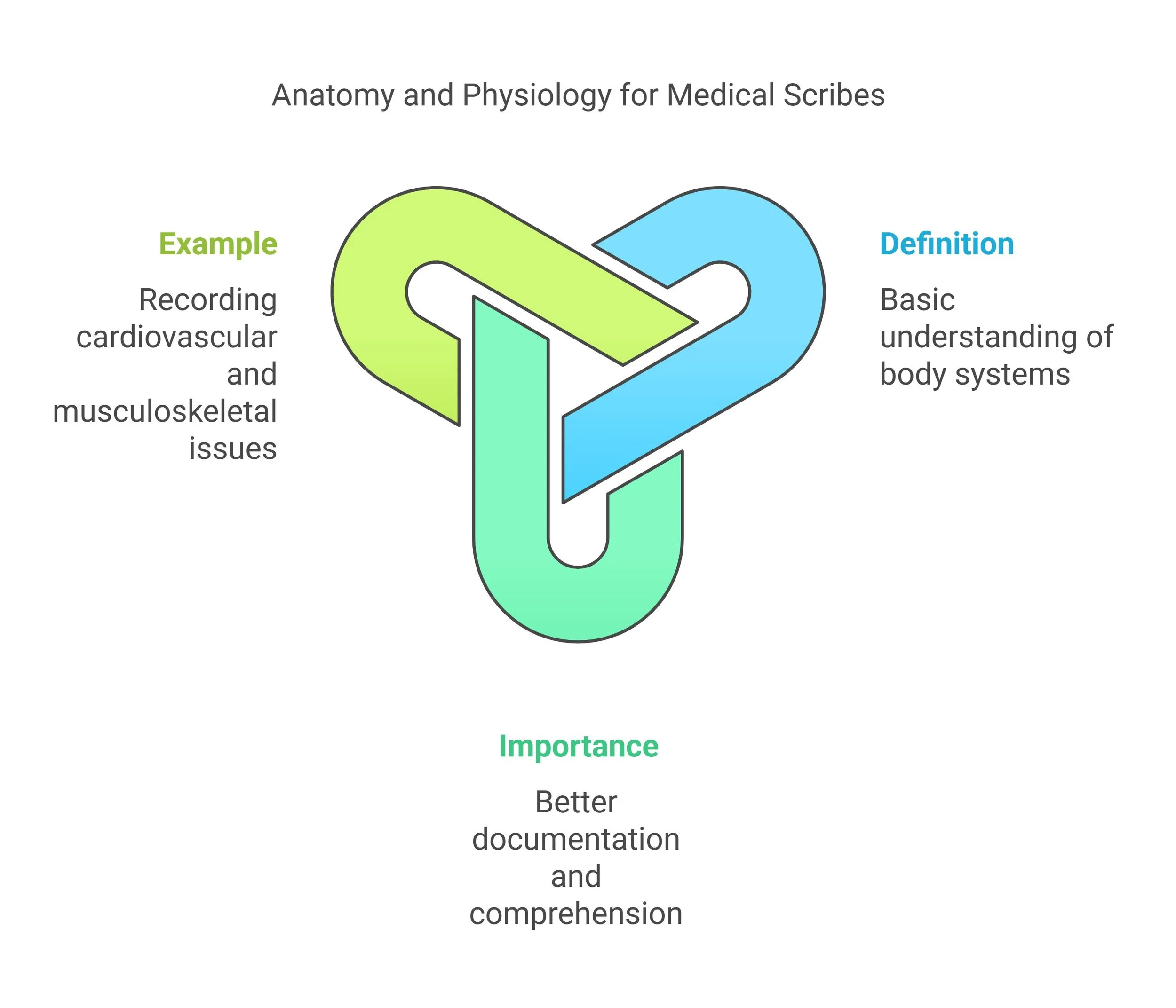 Importance: A medical scribe who understands human anatomy and physiology is better equipped to follow medical discussions and document the appropriate body systems, symptoms, and diagnoses.