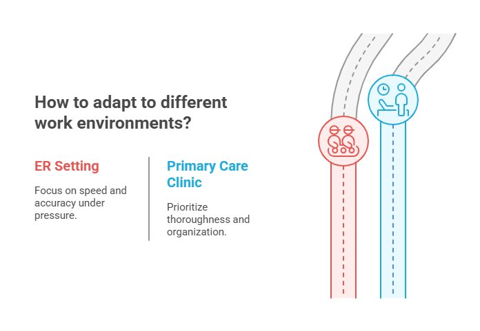 Solution: To succeed in these varied work environments, medical scribes must develop strong adaptability skills. This means understanding the specific demands of each setting and adjusting their workflow accordingly. In fast-paced environments like the ER, scribes may need to focus on speed and accuracy, while in more structured settings like a primary care clinic, they might prioritize thoroughness and organization. Regardless of the environment, developing excellent communication skills with physicians, staying organized, and maintaining flexibility are essential for scribes to thrive in different healthcare settings. With time and experience, scribes learn to navigate these varying demands and ensure that documentation is always completed to the highest standard.