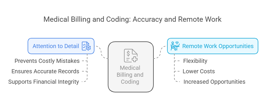 Flexibility to work from home or any location: Remote medical billing and coding positions offer flexibility, allowing professionals to set their own hours and work from anywhere, which is especially beneficial for those with family commitments or those who prefer a home office environment.